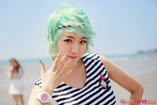 | Lime of Hello Venus sporting funky seafoam green hair, before the blue |